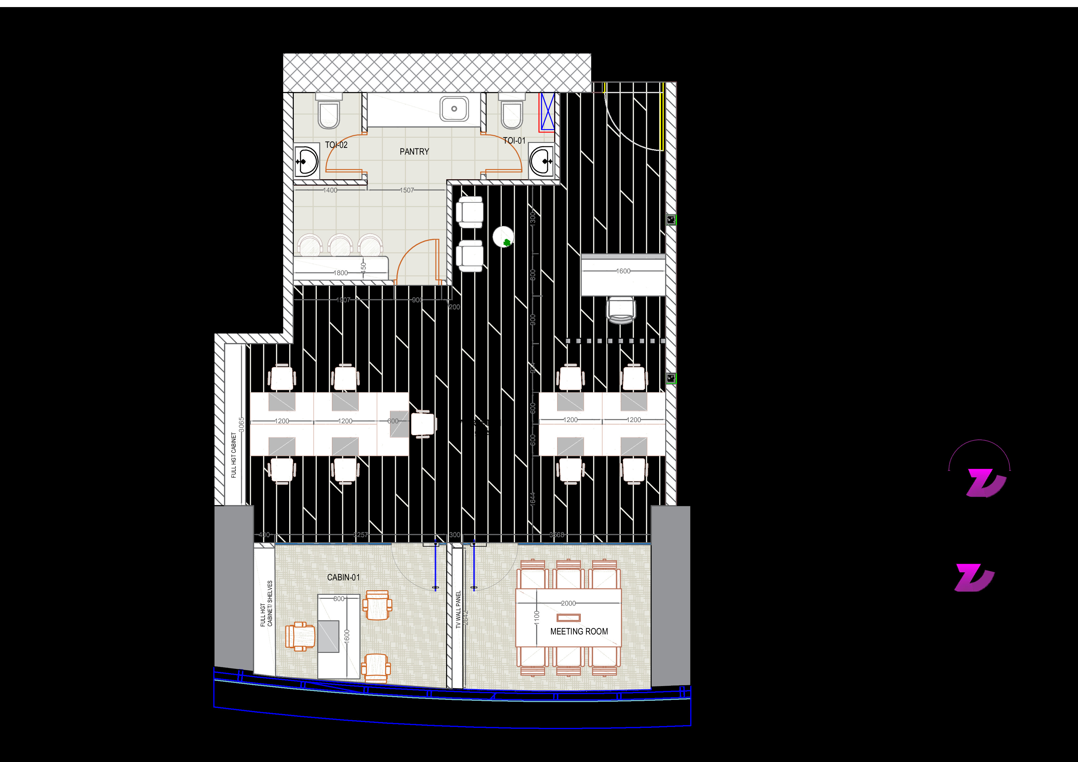 1 meeting room for client and team gatherings