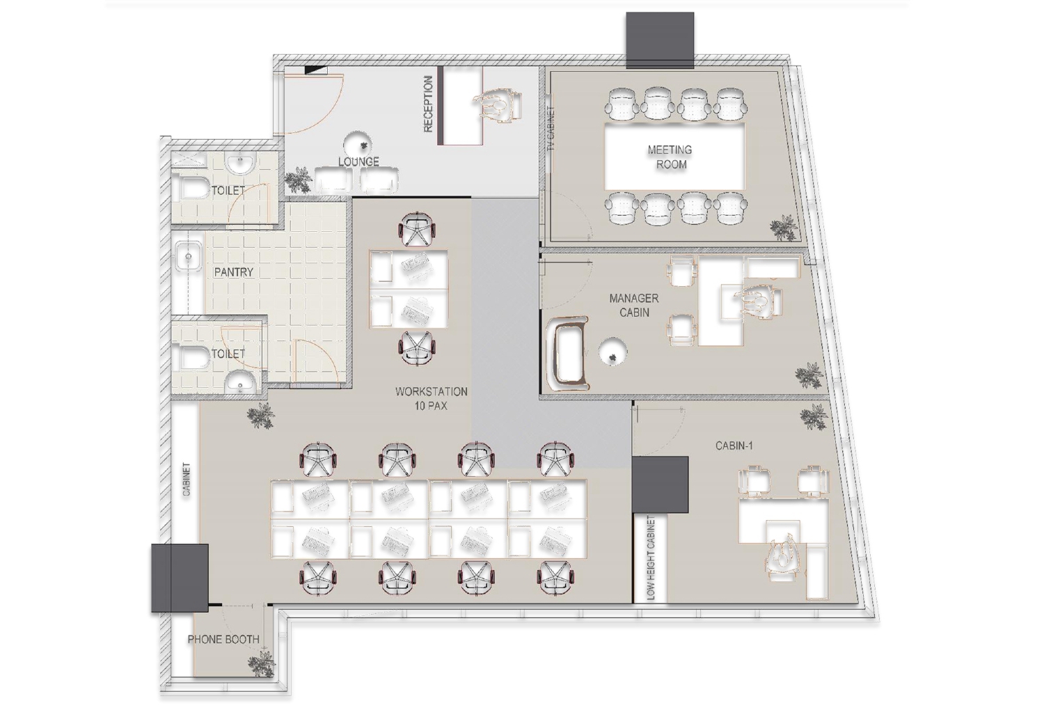 1 meeting room for client and team gatherings